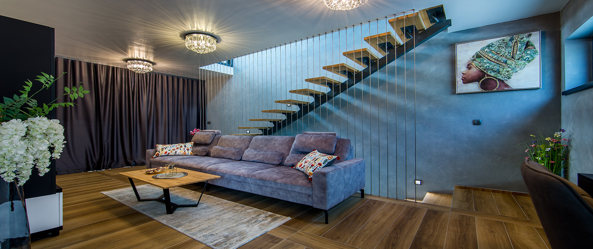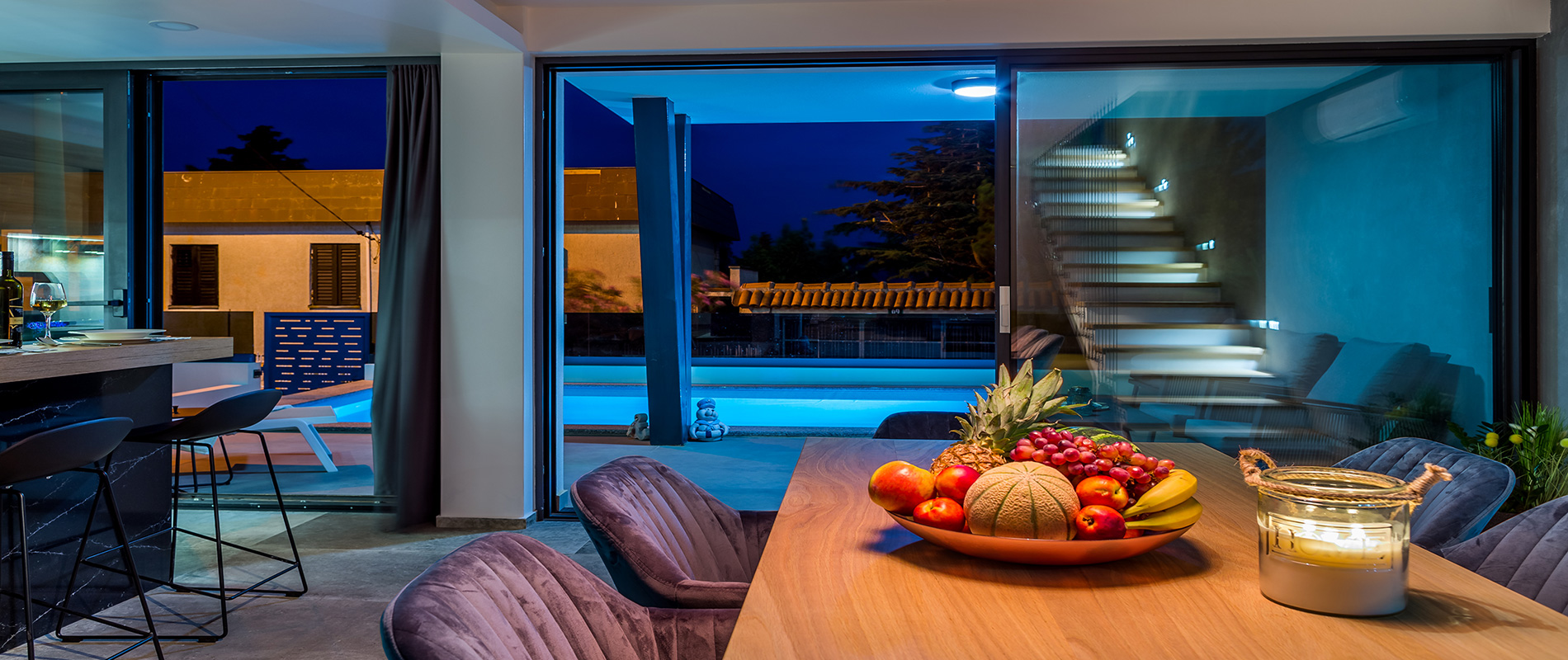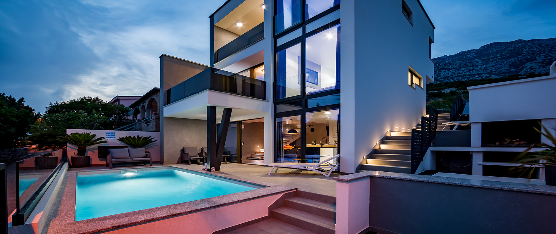 Vila Skrisia je prekrasna novogradnja moderne arhitekture čistih i jednostavnih linija eksterijera i interijera koje pružaju nenametljivu profinjenost i eleganciju.